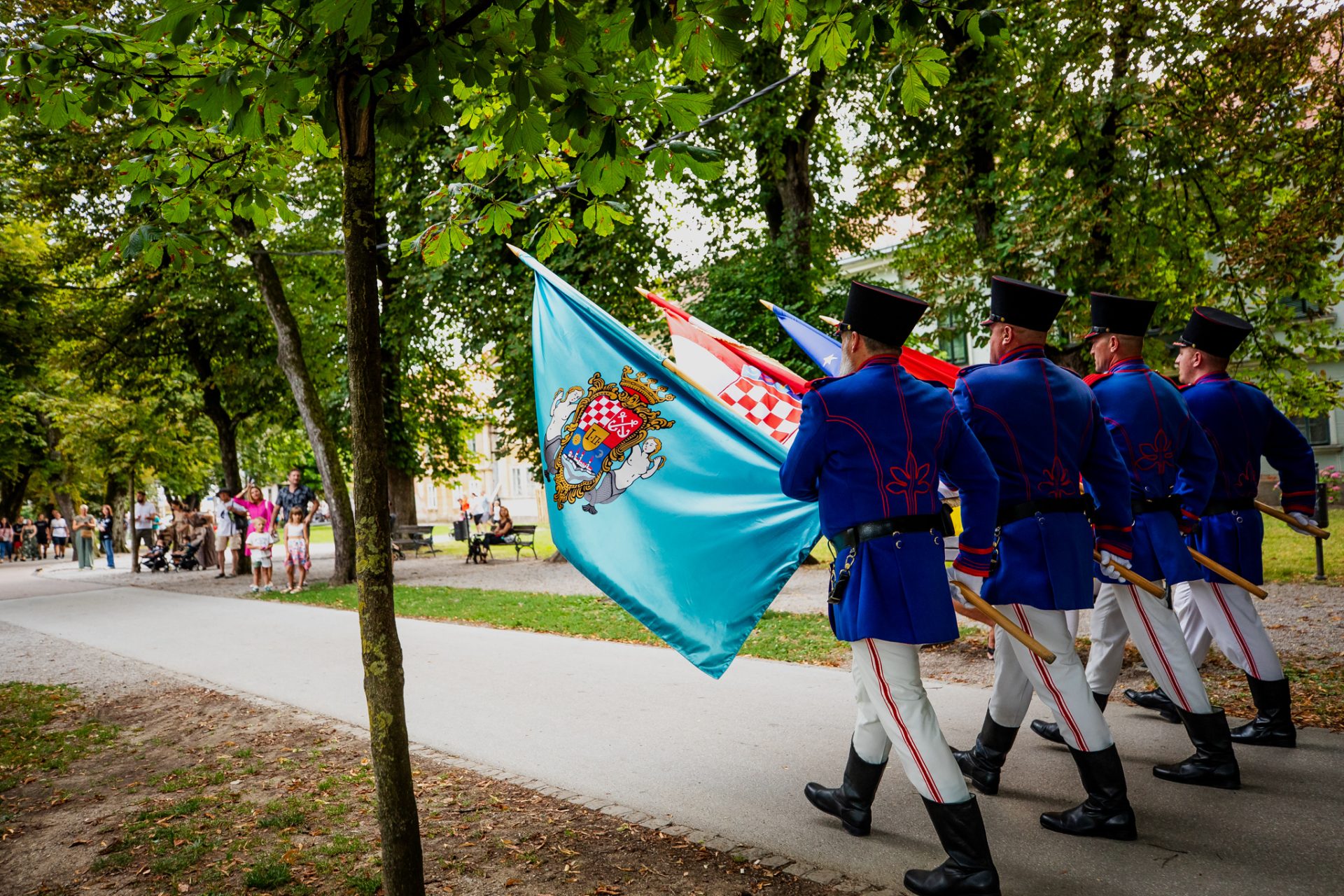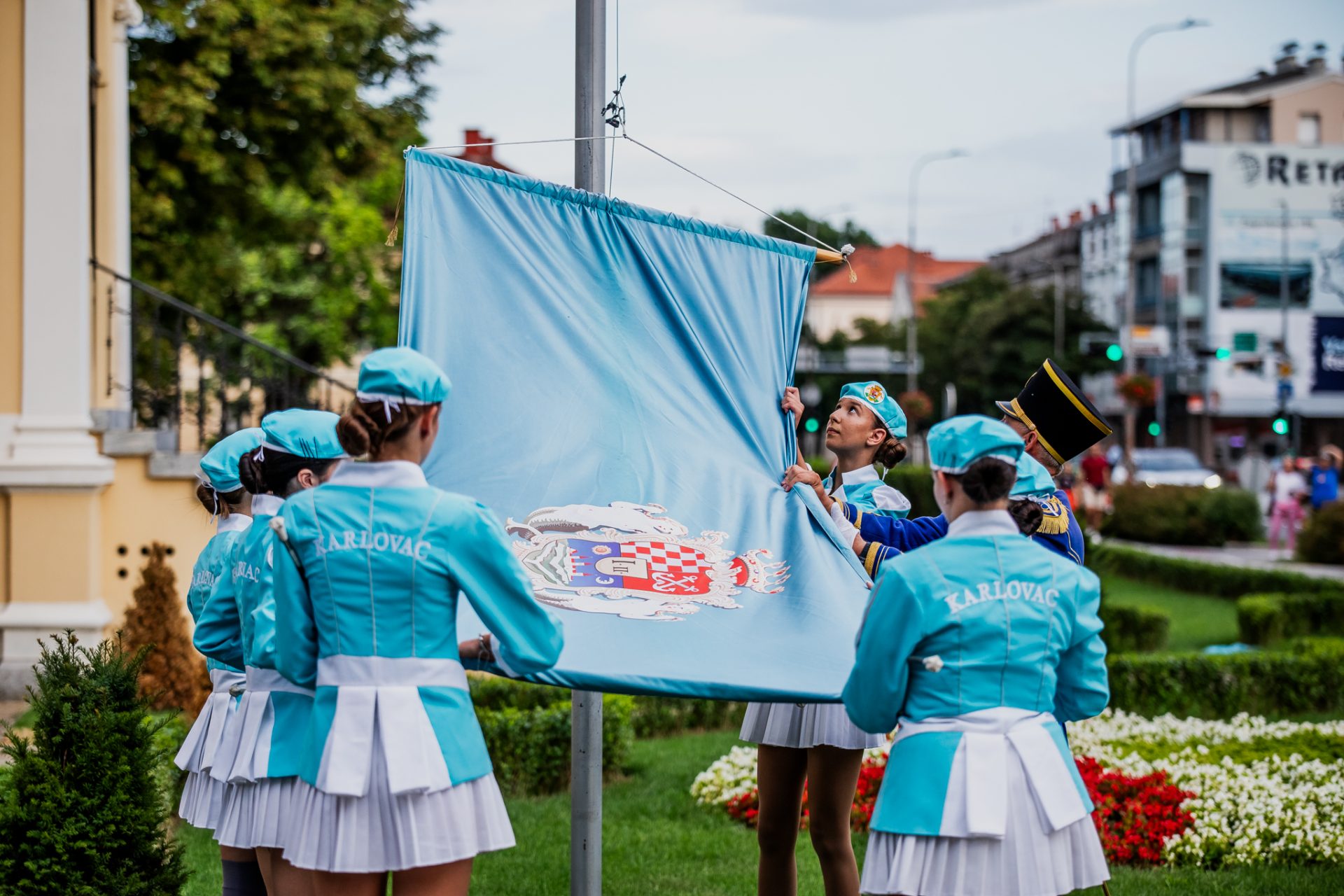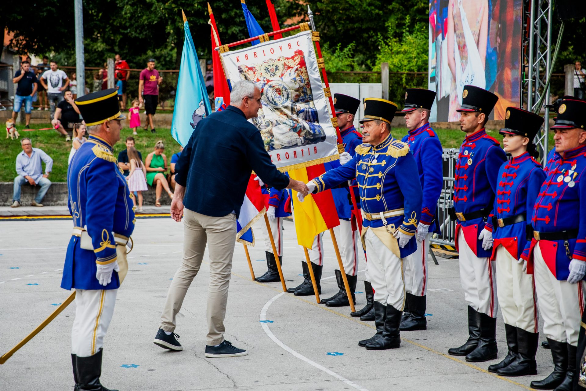 Mimohod povijesnih postrojbi povodom 446.rođendana Grada Karlovca, spuštanje zastave Grada Karlovca i, uz prijavak, predaja zastave gradonačelniku, Karlovac, 13.07.2025.g.