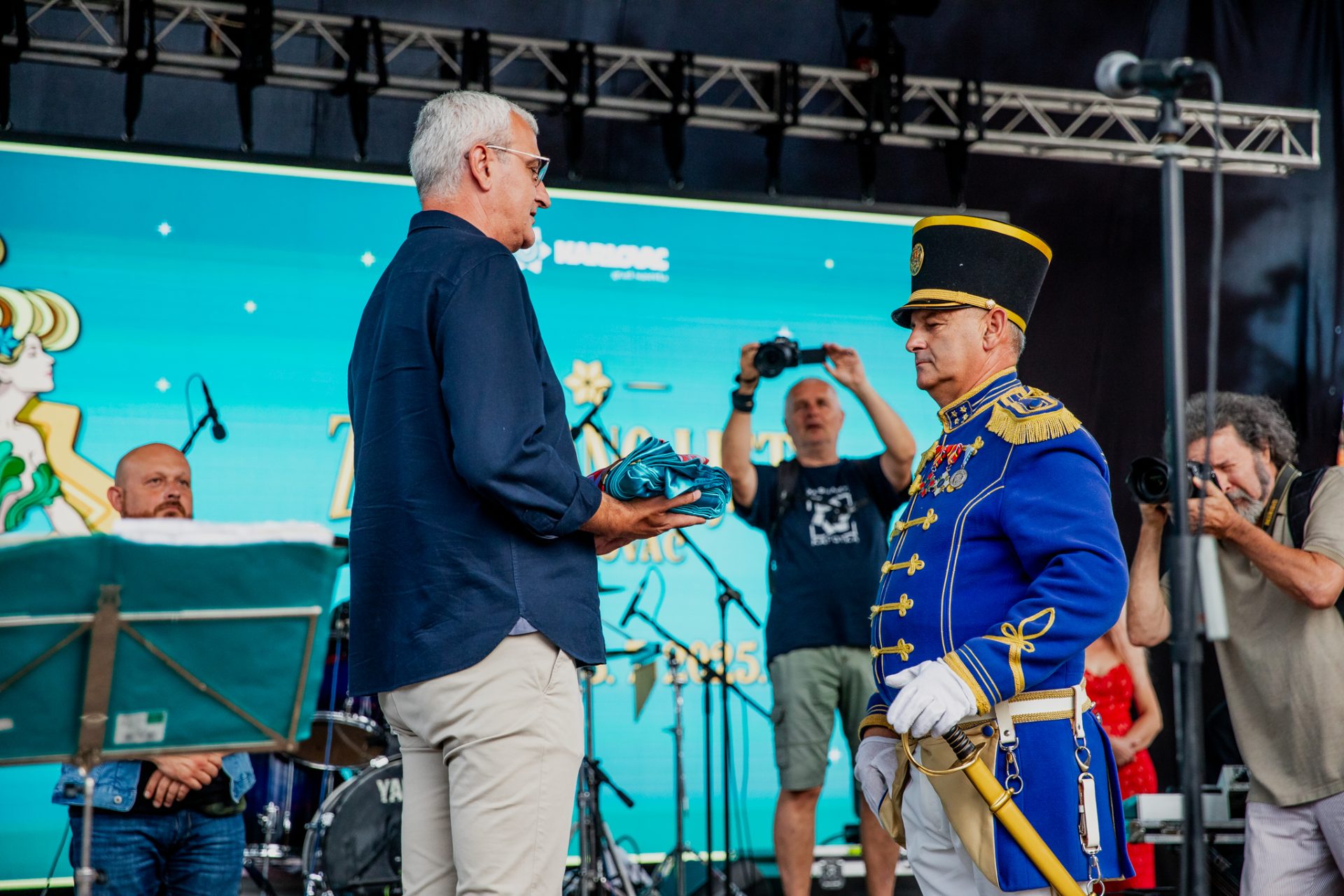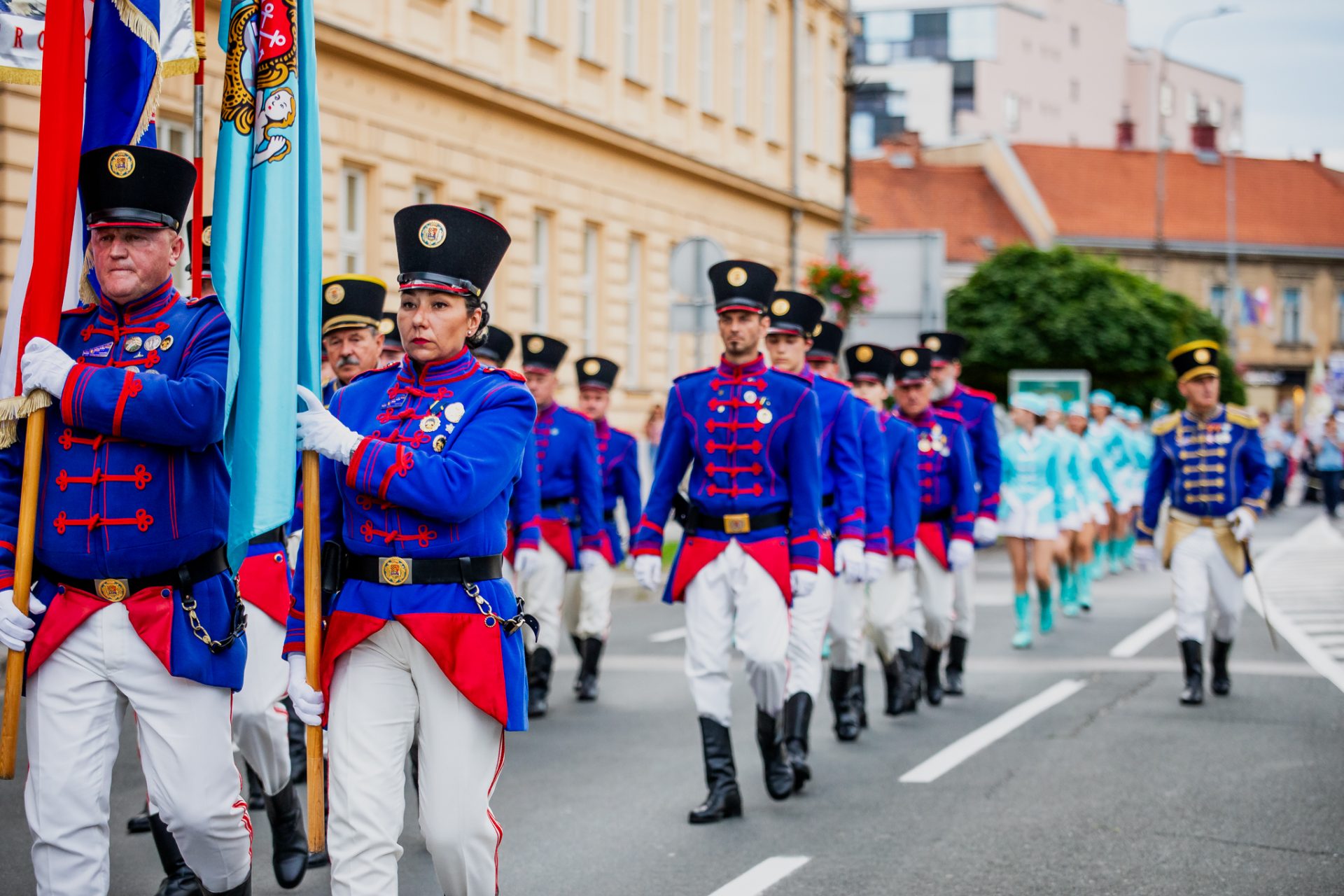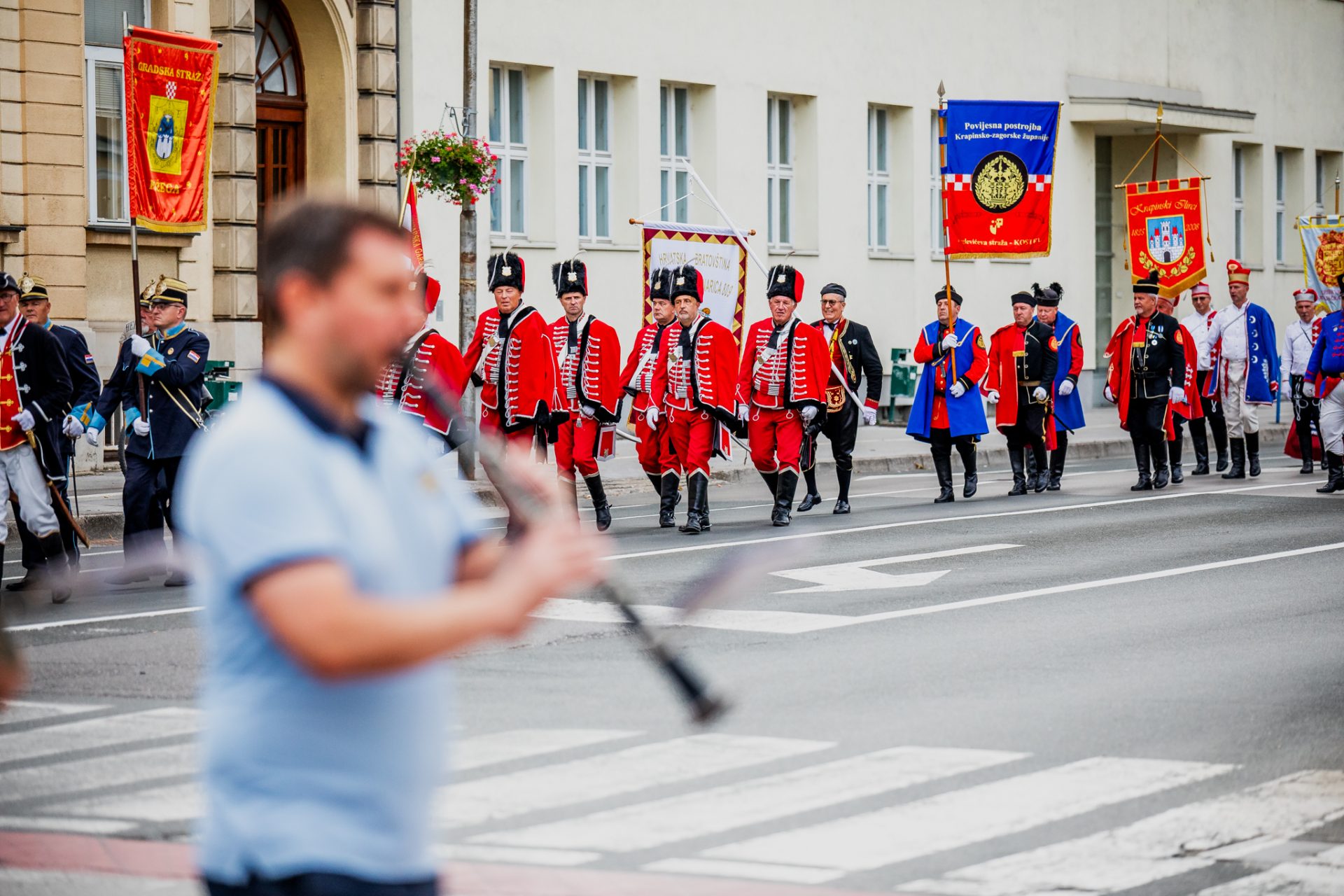Mimohod povijesnih postrojbi povodom 446.rođendana Grada Karlovca, spuštanje zastave Grada Karlovca i, uz prijavak, predaja zastave gradonačelniku, Karlovac, 13.07.2025.g.